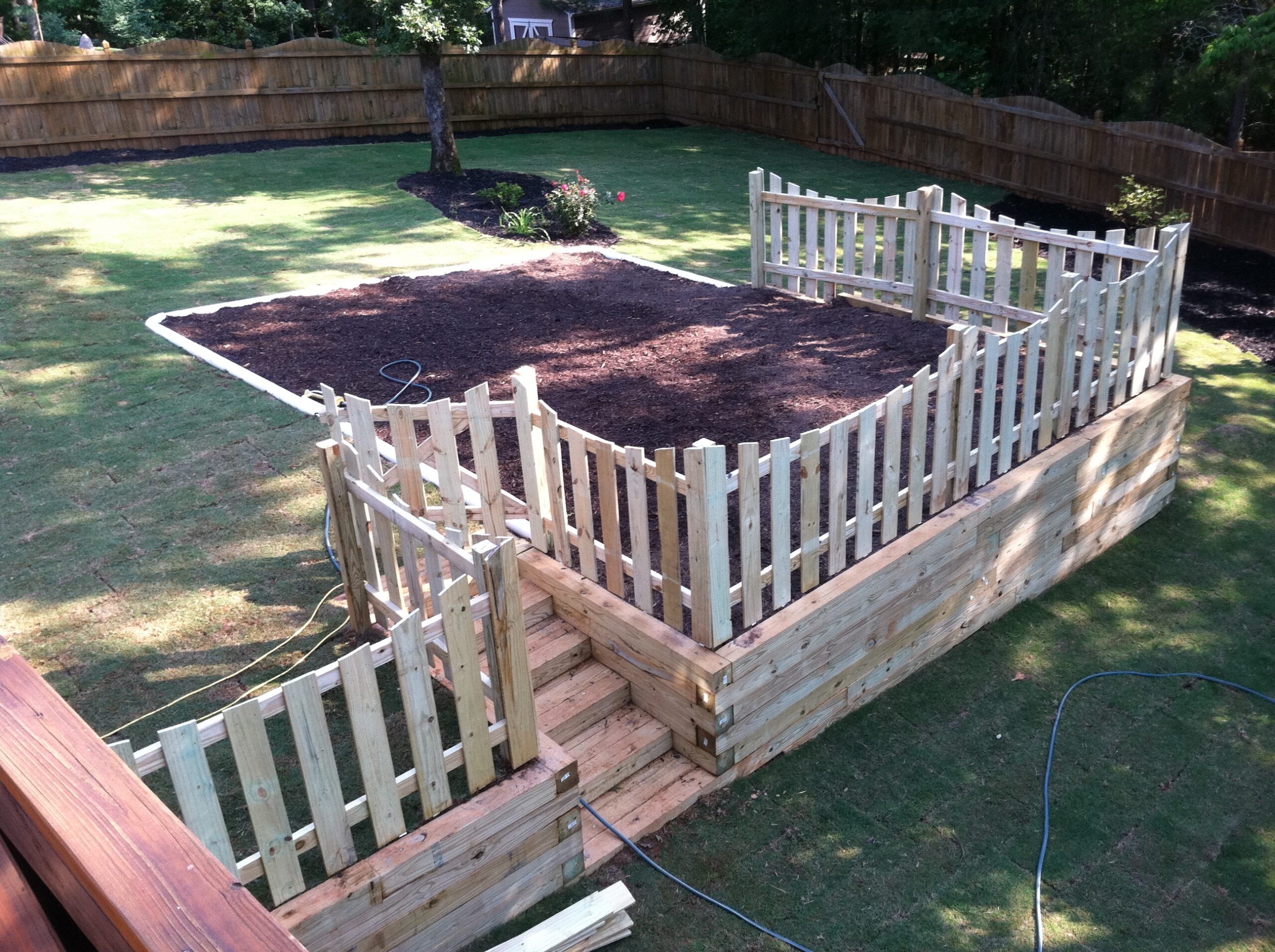 Timber retaining wall and picket fence Dallas GA Lawn Frogs Landscaping